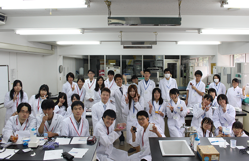 実験の報告書作成の前に、各実習室で記念にパチリ